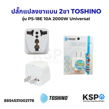 ปลั๊กแปลงขาแบน 2 ขา Universal รุ่น PS-18E จาก TOSHINO ถูกออกแบบมาเพื่อรองรับการใช้งานกับอุปกรณ์ที่มีปลั๊ก 3 ขา โดยแปลงเป็นปลั๊ก 2 ขา ใช้งานได้ทั่วโลก รองรับกำลังไฟสูงสุด 2000 วัตต์และกระแสไฟ 10A ตัวปลั๊กผลิตจากวัสดุทองแดงแท้ 100% และมีเต้ารับแบบ Universal สามารถใช้ได้กับอุปกรณ์ไฟฟ้าทุกชนิดที่มีปลั๊ก 3 ขา ทั้งในประเทศและต่างประเทศ