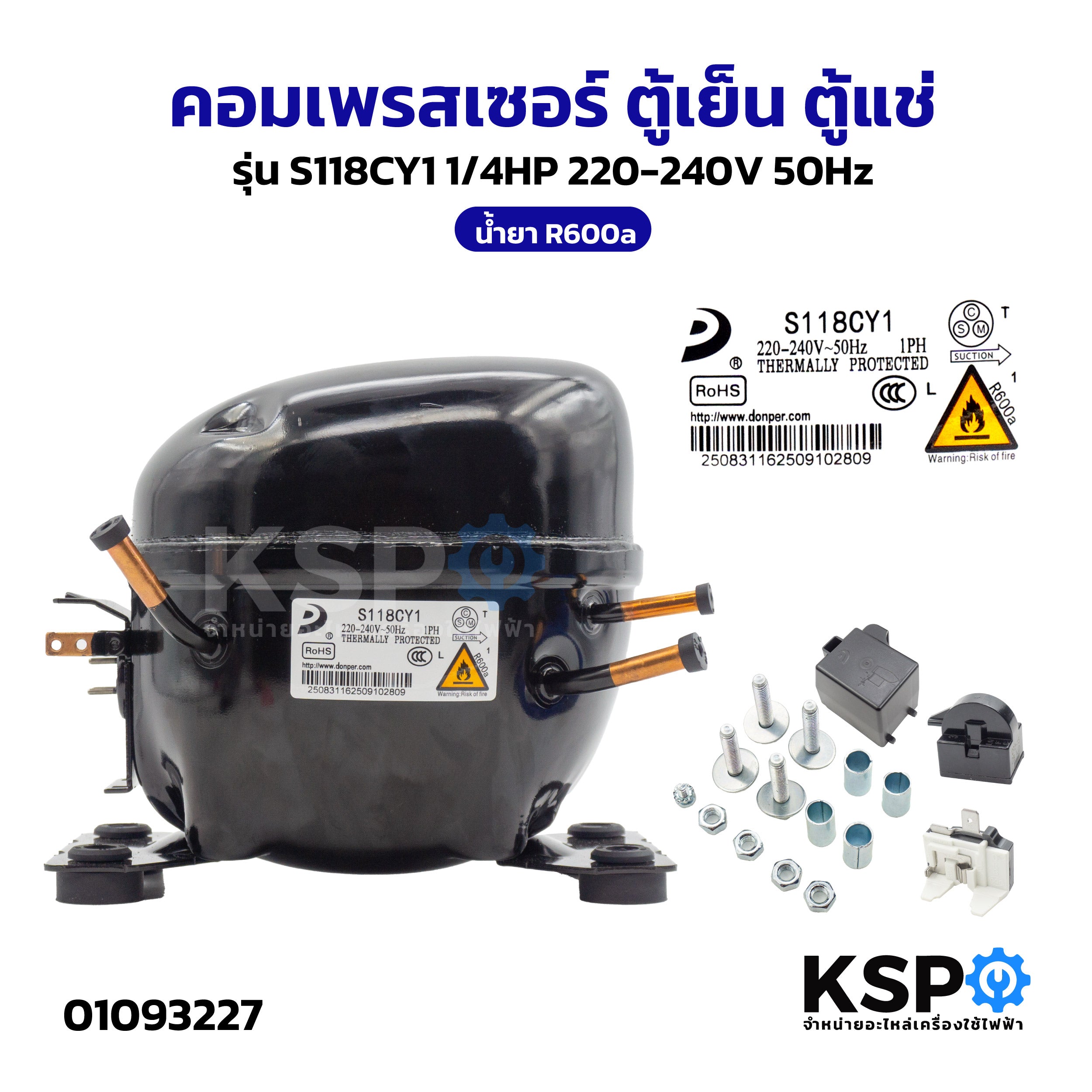 คอมเพรสเซอร์ ตู้เย็น ตู้แช่ รุ่น S118CY1 1/4HP 220-240V 50Hz น้ำยา R600a อะไหล่ตู้เย็น