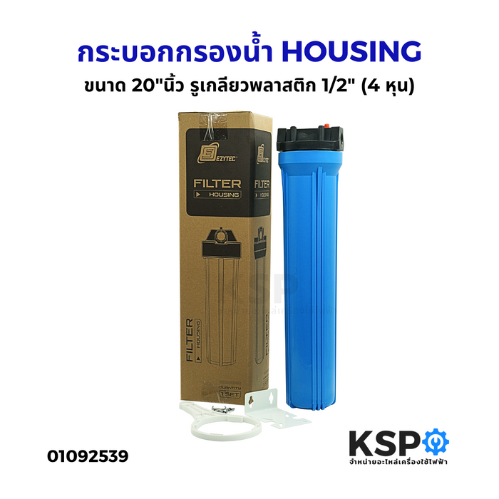 กระบอกกรองน้ำ HOUSING ขนาด 20"นิ้ว รูเกลียวพลาสติก 1/2" (4 หุน) ทรงใหญ่ (สีฟ้าเข้ม) อะไหล่เครื่องกรองน้ำ